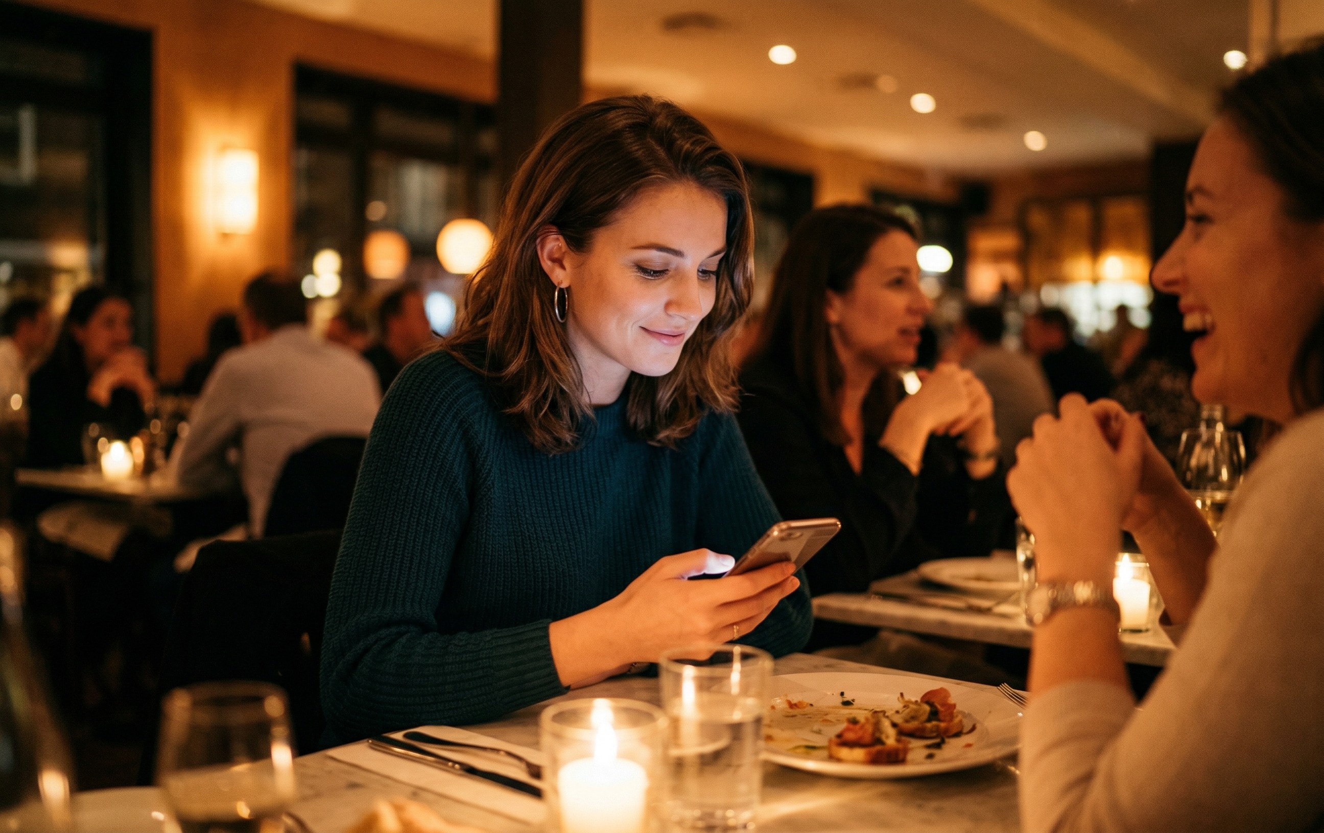 A card tap at dinner. A phone lights up: "You earned 3X points at Rosa's. You're 400 points from your next reward." Same transaction, already processed. Now it's a step toward the next trip.